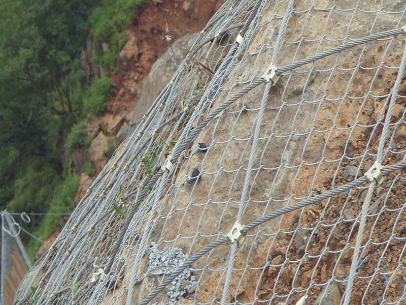 主動防護網是目前最有效的邊坡防護產品,主動防護網是將小片鋼絲繩網縫合在一起形成一張大網,將整個山體罩住,防止落石滾落。即使非常陡峭的邊坡也同樣可以采用主動防護網的方式進行防護,陡峭的山坡落石一旦風化,就極有可能發生塌方、滾落,傷及到路邊的行人與車輛。采用主動防護網進行防護,巖石風化、滾落也只能在主動防護網的控制范圍內運動。